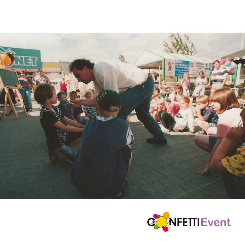 Das 6-köpfige Confetti Team begeisterte Mädchen und Jungen mit ihrer Kinderanimation. Dazu gehörte u.a. ein Umwelt- und Action Quiz nach dem Format 1-2 oder 3 ebenso wie die Charakterfigur Fritz und die Fritz Club Hüpfburg.